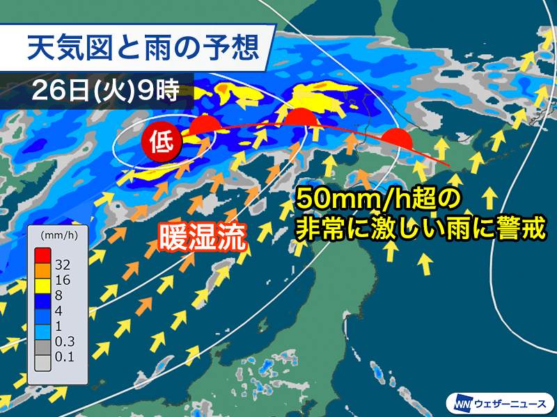 また、総雨量が最大で100〜150mmに達する見通しです。道路冠水や河川の増水、低い土地の浸水、土砂災害などに警戒をしてください。