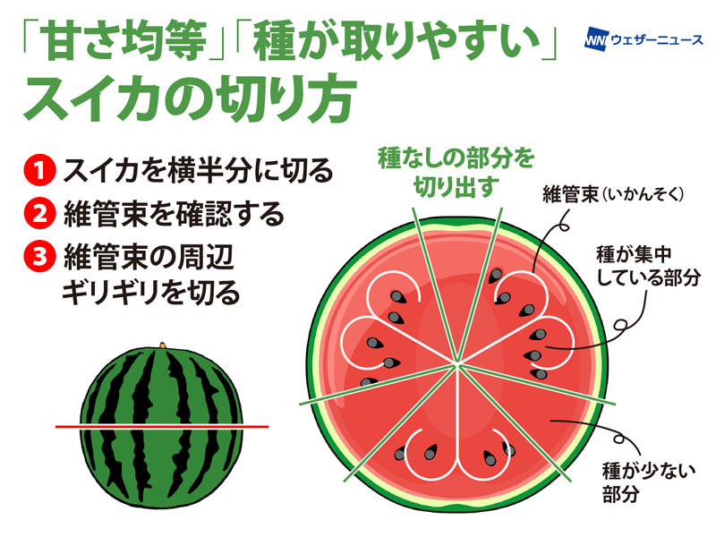 スイカは夏の風物詩ですが、水分の多さやカリウムなどのミネラル類、シトルリンというアミノ酸などがバランスよく含まれたすぐれた食材といえます。暑さはまだ続きますが、上手にスイカをカットしておいしく味わってみませんか。