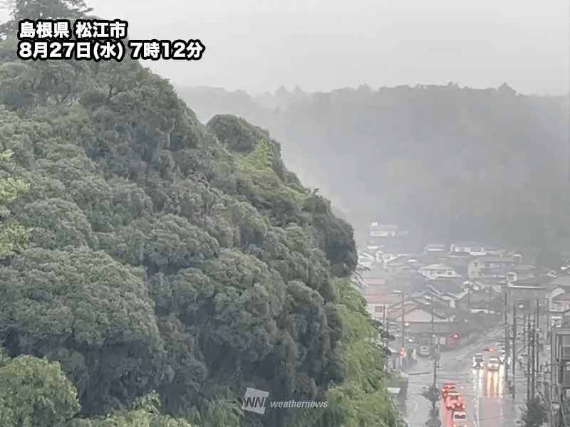 また、山陰でも雨が強まっていて、鳥取県米子市では8時までの1時間に38.0mmの激しい雨、島根県松江でも7時30分までの1時間に27.0mmの強い雨を観測しました。
