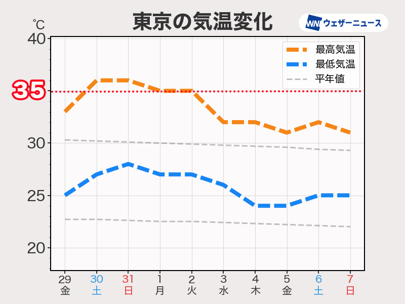 週末は太平洋高気圧が勢力を強まって上空には暖かい空気が流れ込み、西日本や東日本を中心に35℃を上回る猛烈な残暑となる予想です。8月最後の週末となりますが、真夏のような体感が続きそうです。