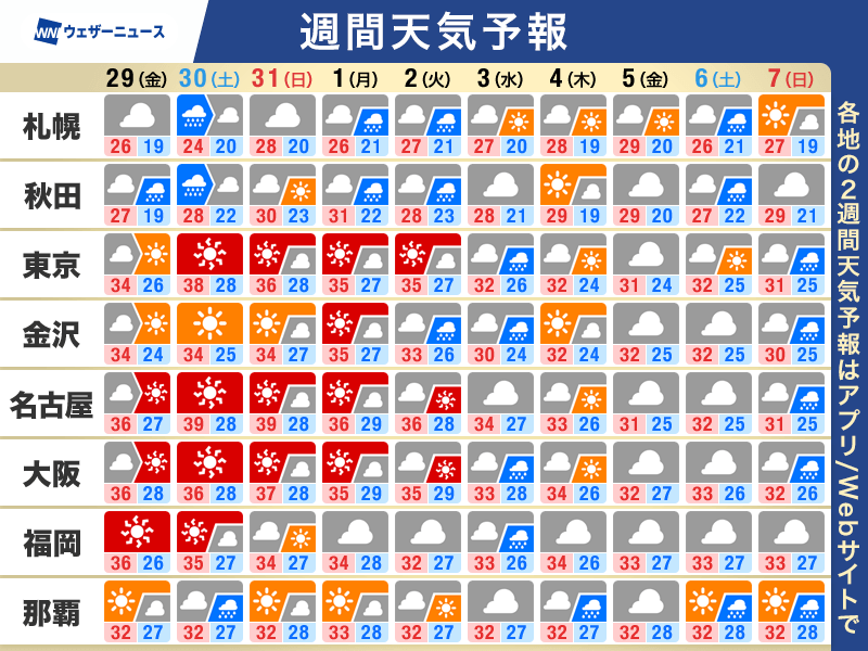週間天気予報 8月最後の週末も猛暑 来週は前線南下で雨や曇り