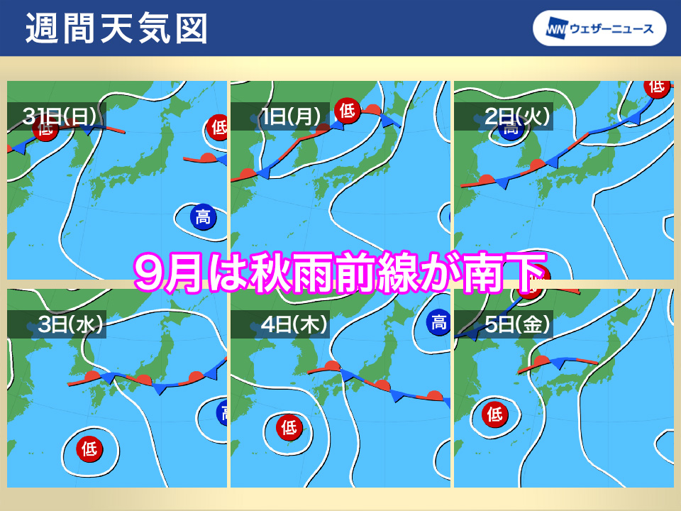 来週は秋雨前線が南下 雲が広がり猛暑は少し和らぐ