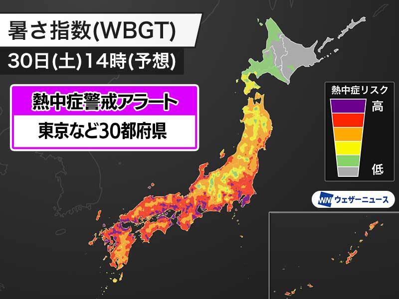 明日8月30日(土)の熱中症警戒アラート 関東から西の30都府県に発表