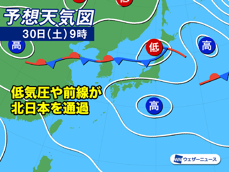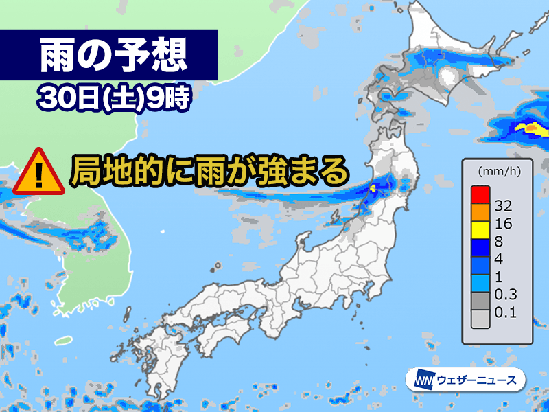 北海道の太平洋側や東北北部では、今夜から明日30日(土)にかけても局地的に強まる雨に注意が必要です。