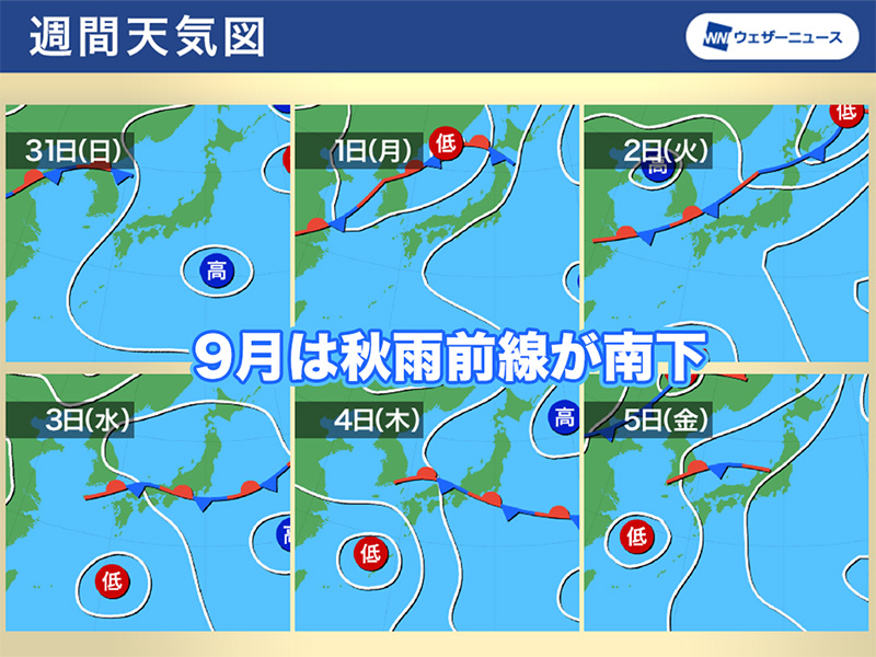 来週は秋雨前線が南下、熱帯擾乱の動向注意