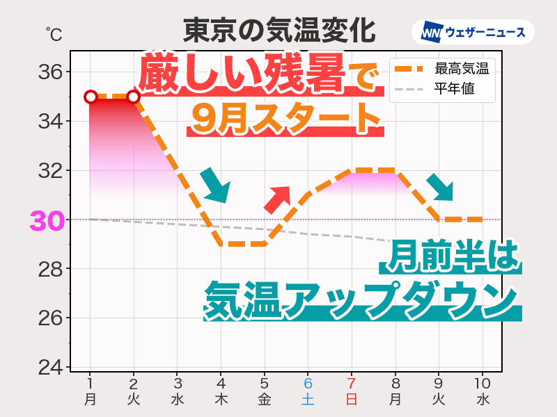 週間天気予報 9月も厳しい残暑続く 秋雨前線や低気圧の動向に注意