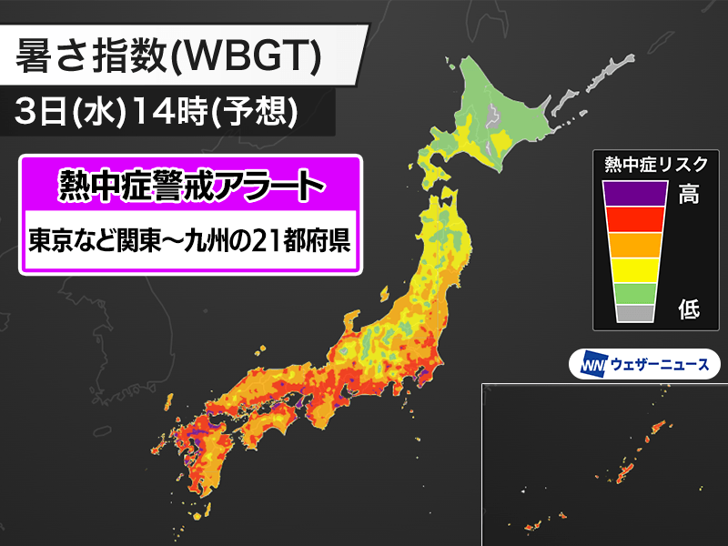 明日9月3日(水)の熱中症警戒アラート 東京など21都府県に発表