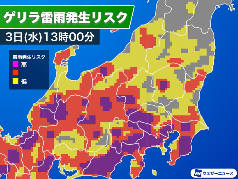 関東で雨雲が急発生 午後はゲリラ雷雨に注意