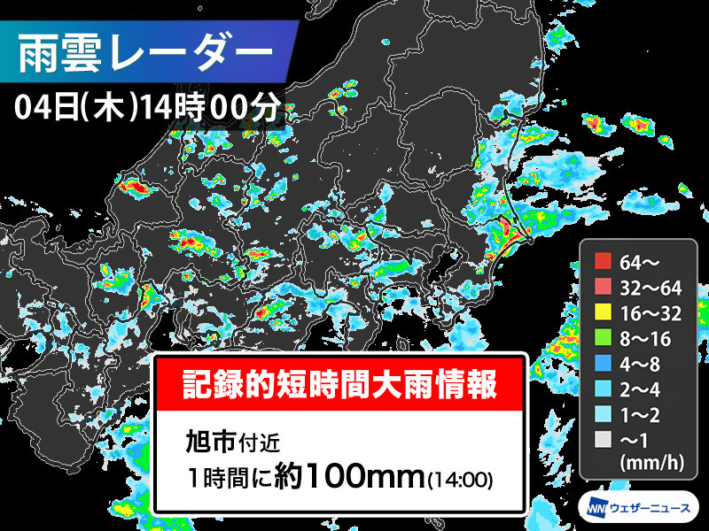 千葉県で1時間に約100mmの猛烈な雨 記録的短時間大雨情報