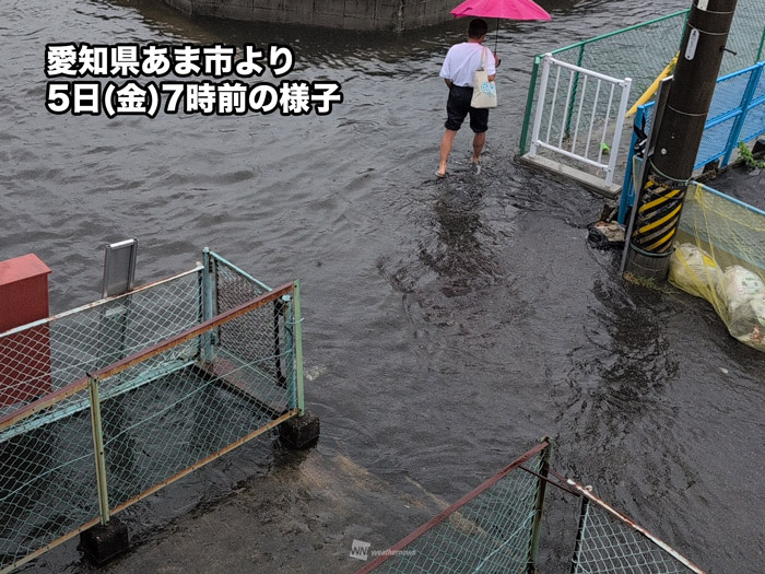 7時までの1時間に静岡県南伊豆町の石廊崎と和歌山県白浜町の日置川では40.5mmの激しい雨が降っています。愛知県豊田市でも33.0mmの雨を観測しました。関東地方でも南部を中心に本降りの雨となっていて、沿岸部では一部で土砂降りになっているところもあります。