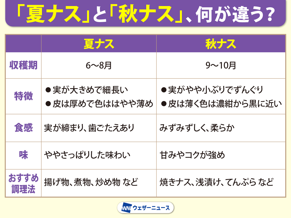 夏頃に盛んに出回る「夏ナス」と秋に出回る「秋ナス」では呼び名が変わるだけなのでしょうか。