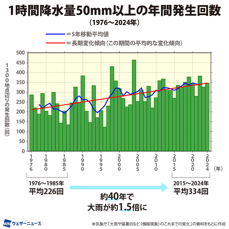 気象庁「日本の気候変動2025」、同「防災気象情報と警戒レベルとの対応について」、国土交通省「水害レポート2024」、同「令和5年の水害被害額(確報値)を公表」、内閣府「避難情報に関するガイドラインの改定(令和3年5月)」、消防庁「平成27年台風第18号による大雨等に係る被害状況等について(第40報)」、政府広報オンライン「河川の氾濫や高潮など、水害からあなたの地域を守る、『水防』」