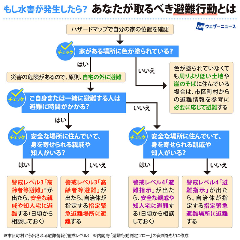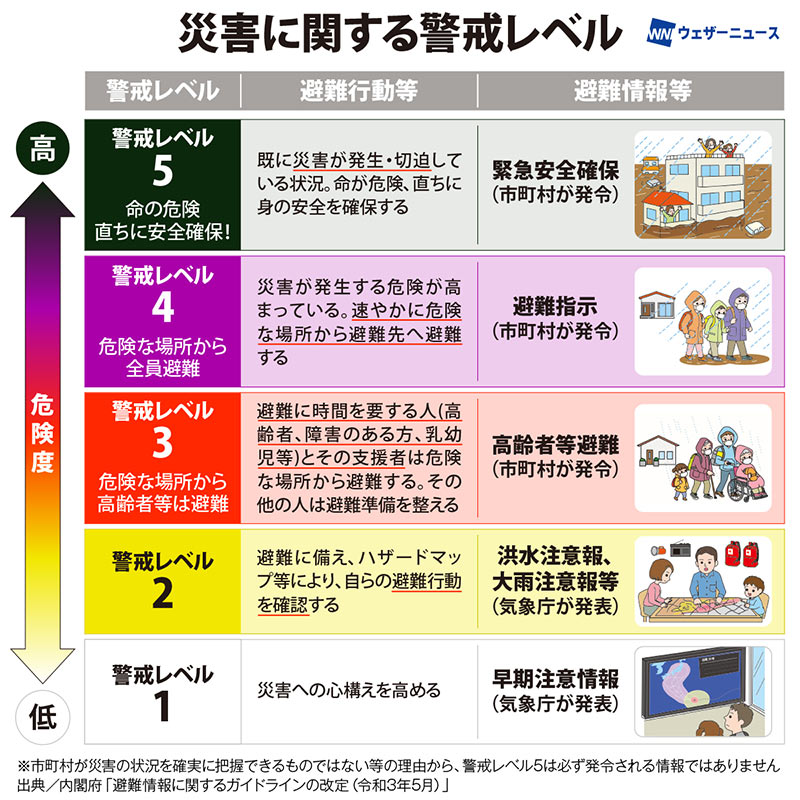 避難に時間がかからない場合は、これと同様の行動を警戒レベル4「避難指示」の段階で行うようにしてください。