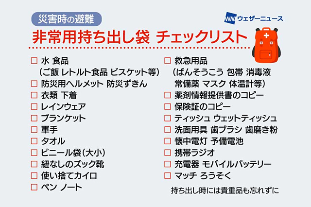 「非常用持ち出し袋」や「家族との安全確認手段」の確認も