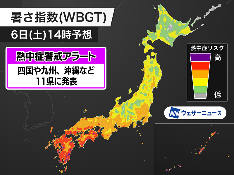 今日9月6日(土)の熱中症警戒アラート 四国や九州など11県に発表