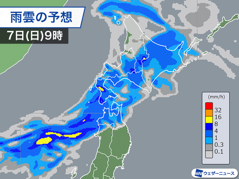 明日7日(日)は低気圧が北海道付近を通過し、低気圧からのびる寒冷前線が日本海を南下する予想です。