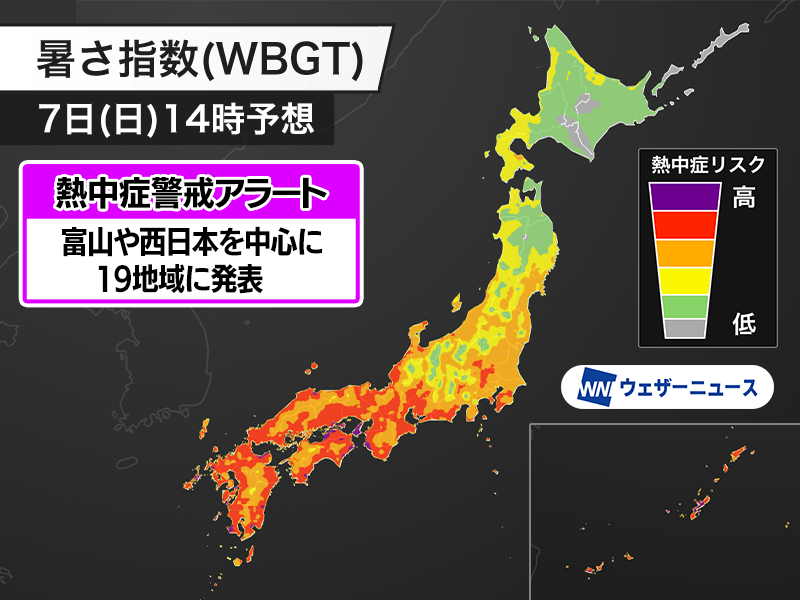 今日9月7日(日)の熱中症警戒アラート 西日本を中心に19地域に発表