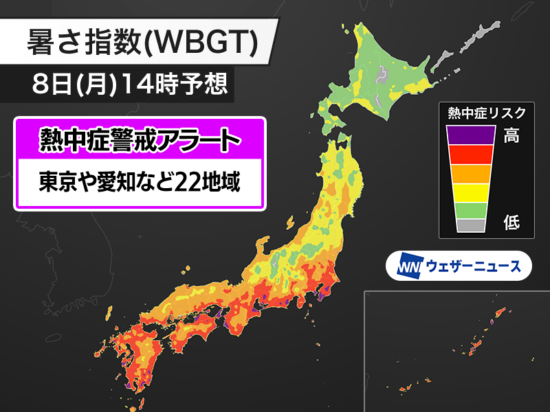 今日も東京都を含む22の地域に熱中症警戒アラートが発表されています。