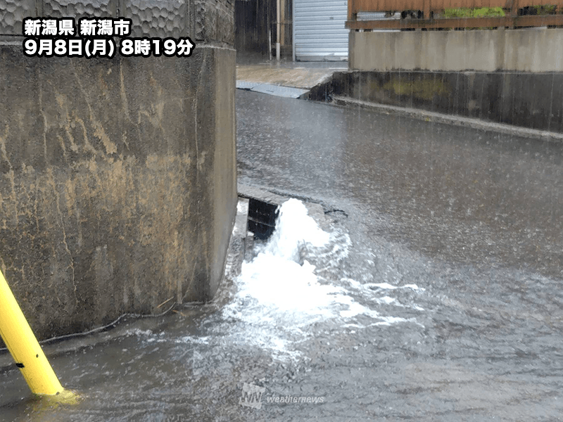新潟市内のウェザーニュースアプリ利用者からは冠水の報告も複数寄せられていて大雨による災害発生のリスクが高まっています。9時現在、新潟県と石川県には土砂災害警戒情報が発表中です。