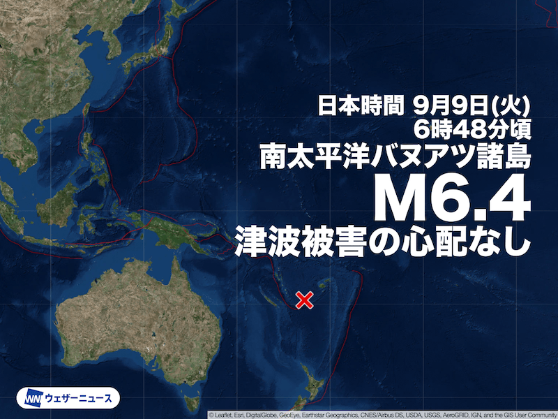 南太平洋 バヌアツ諸島でM6.4の地震 津波被害の心配なし