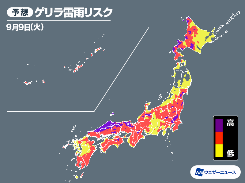 ゲリラ雷雨に注意