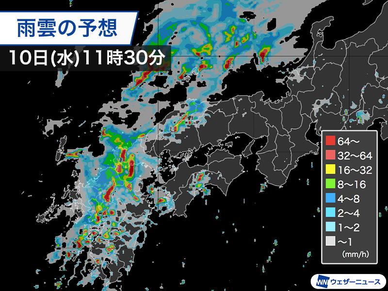 この後、強雨のエリアは中国地方に移動するとみられ、気象庁は「中国地方では10日昼前から夕方にかけて線状降水帯が発生して大雨災害発生の危険度が急激に高まる可能性がある」との気象情報を発表しています。線状降水帯が形成された場合には非常に激しい雨が数時間継続し、想定以上の大雨となるおそれもあります。