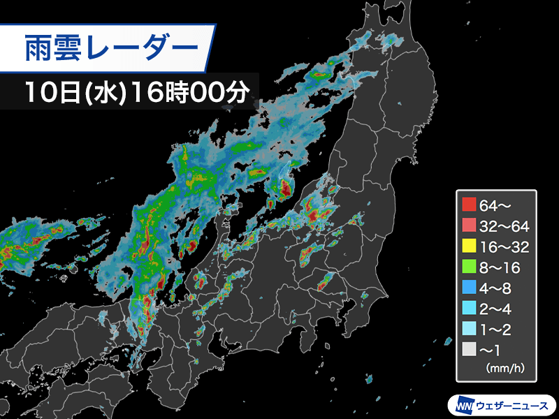 関東、東海でも局地的に雨雲が発達