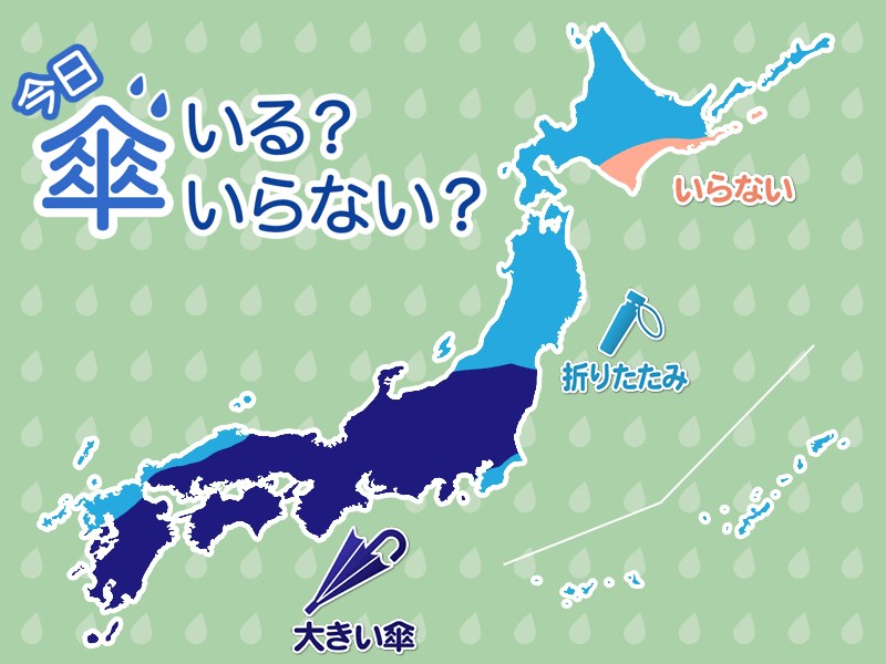 東北地方は雲が多く、昼頃までを中心に雨の降ることがあります。折りたたみ傘を持ってお出かけください。