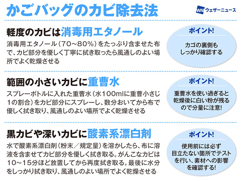 ひと夏使ったかごバッグ、保管を間違えるとカビだらけに? カビ除去法&保管法