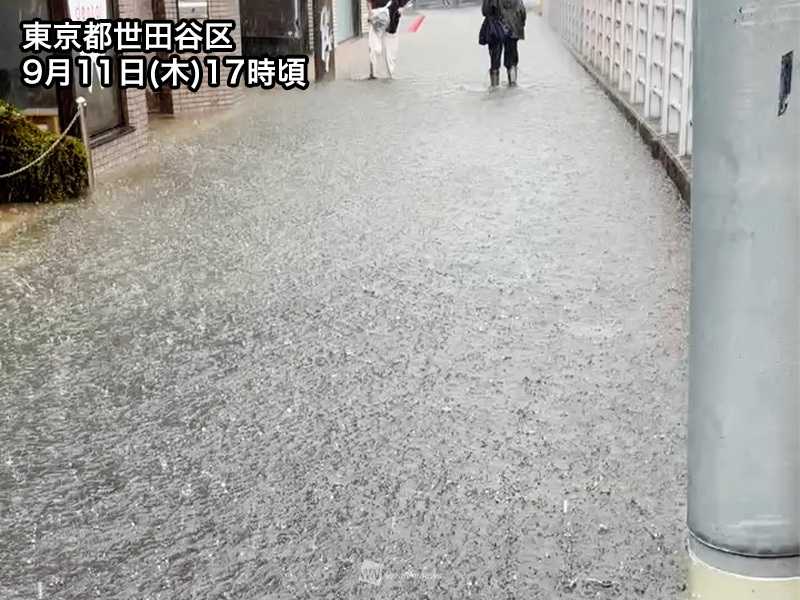 東京世田谷では1時間に92mm、東京羽田では75mmの猛烈な雨を観測し、観測史上最大の雨量となりました。都内を含む各地から大規模な冠水、建物への浸水の報告も多数寄せられています。記録的な大雨に伴い、目黒川など都内の一部の河川が増水し、氾濫危険情報(警戒レベル4相当)が発表されました。