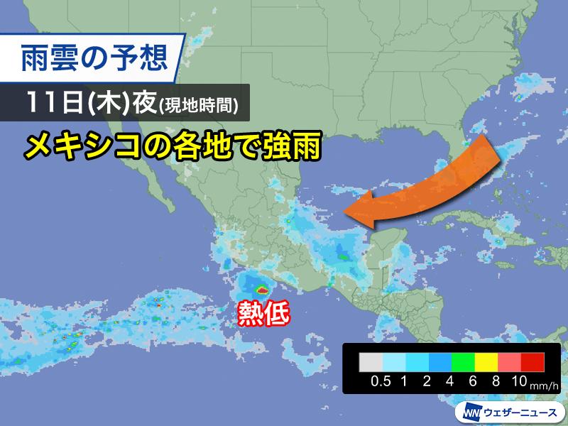 また、熱帯低気圧が発達することで、メキシコ湾からの湿った空気の流入が強まり、メキシコ湾側でも雨雲が活発になる見通しです。気象当局は大雨による河川の増水や土砂災害などに対し、注意を呼びかけています。