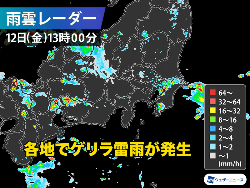 12時前後から名古屋市付近で雨雲が急発生し、激しい雨や雷雨をもたらしました。