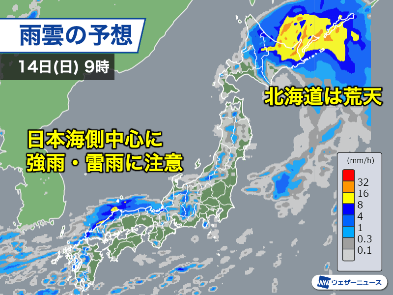 太平洋側は引き続き湿った空気や昇温の影響でゲリラ雷雨となる可能性があります。日差しが届いても油断は禁物です。関東や東北は強風にも注意してください。