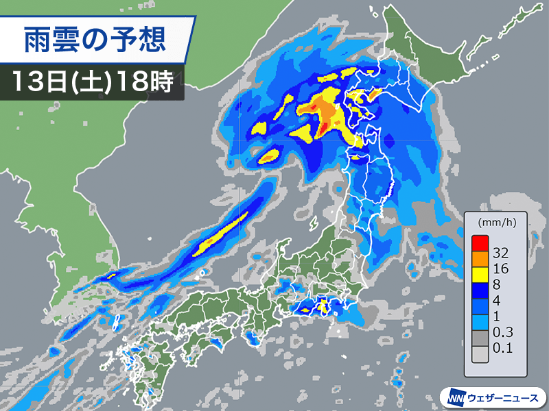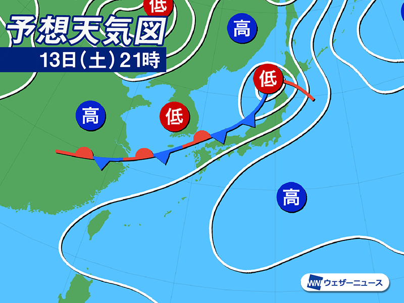 三連休初日の今日13日(土)は北日本や日本海側で強雨や雷雨に注意