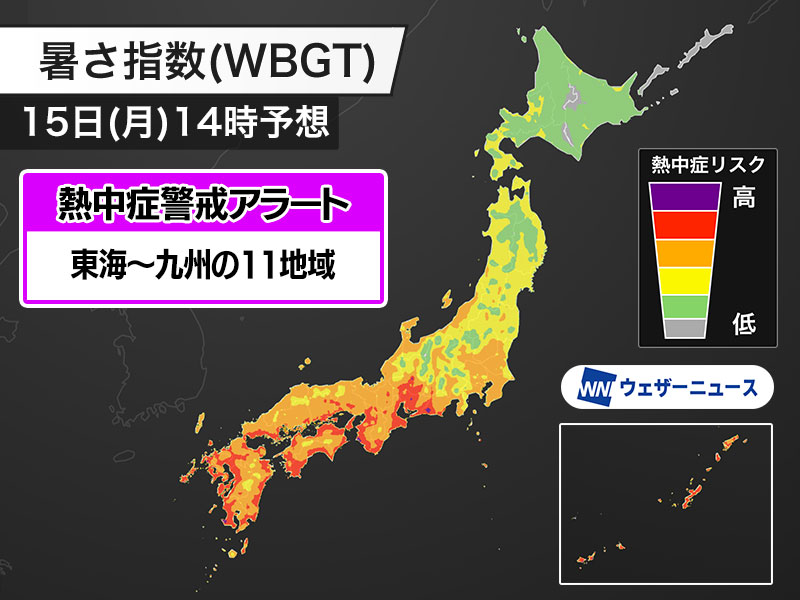 明日9月15日(月)の熱中症警戒アラート 愛知県や福岡県など11地域に発表
