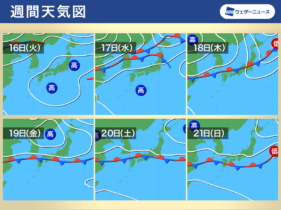 週後半は前線南下し太平洋側も雨