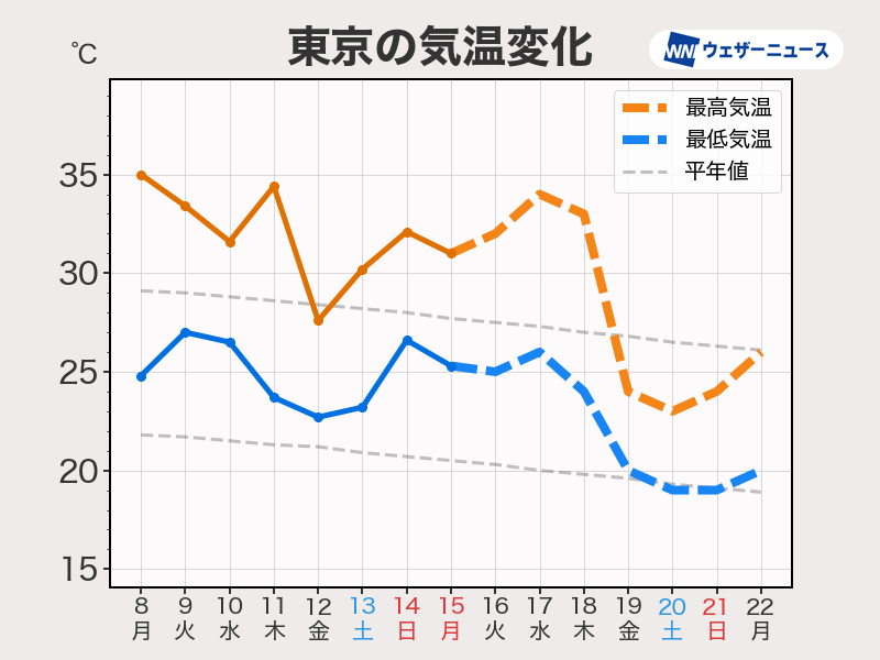 週中頃まで厳しい残暑 週末は関東など気温低下