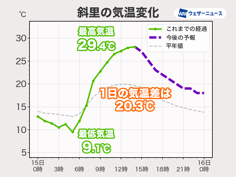 朝と昼間の気温差が20℃以上