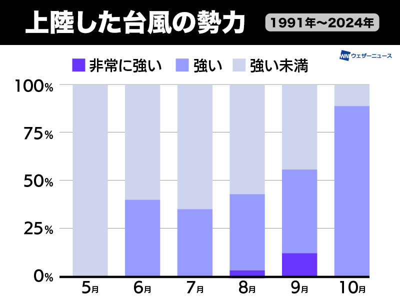 強い勢力での襲来が多い秋台風