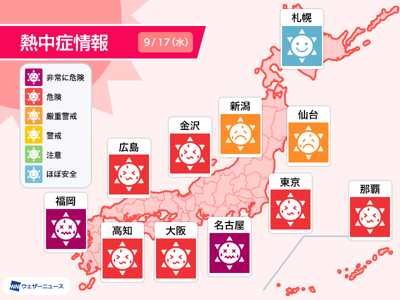 今日も関東や東海を中心に厳しい残暑続く 名古屋などで猛暑日予想