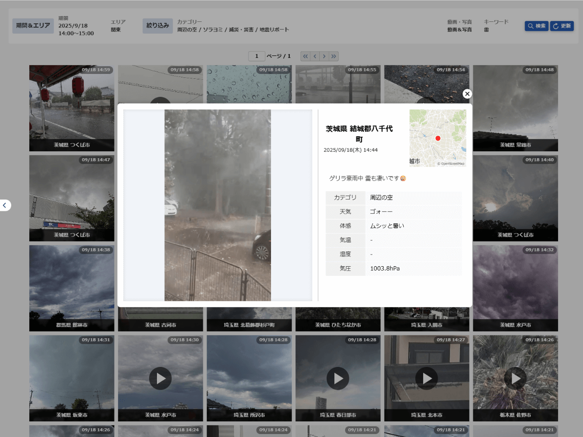 当日も雷雨に関する報告が多く寄せられていました。雨雲レーダーだけでは分からない実際の現地の様子を把握したい場合にも、ぜひご活用ください。
