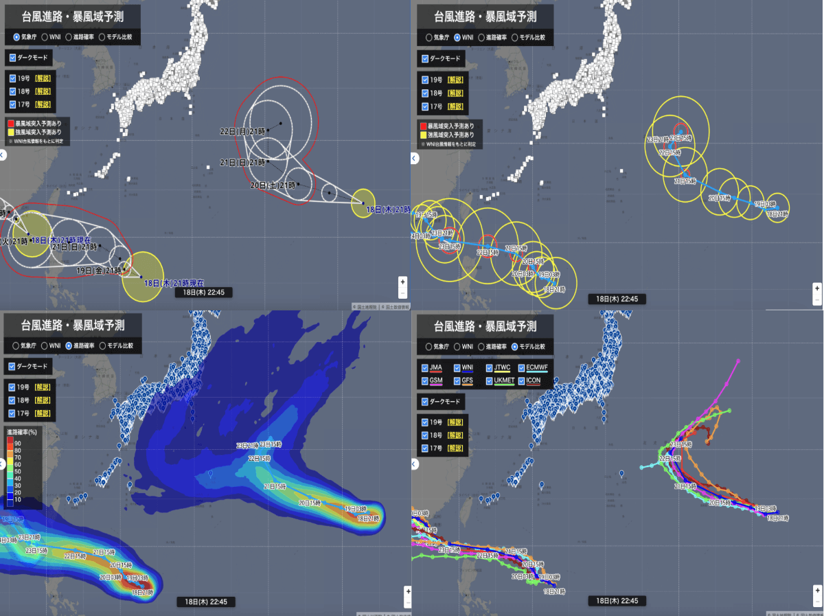 18日(木)、3つの熱帯低気圧が台風に変わり、台風17号、18号、19号となりました。