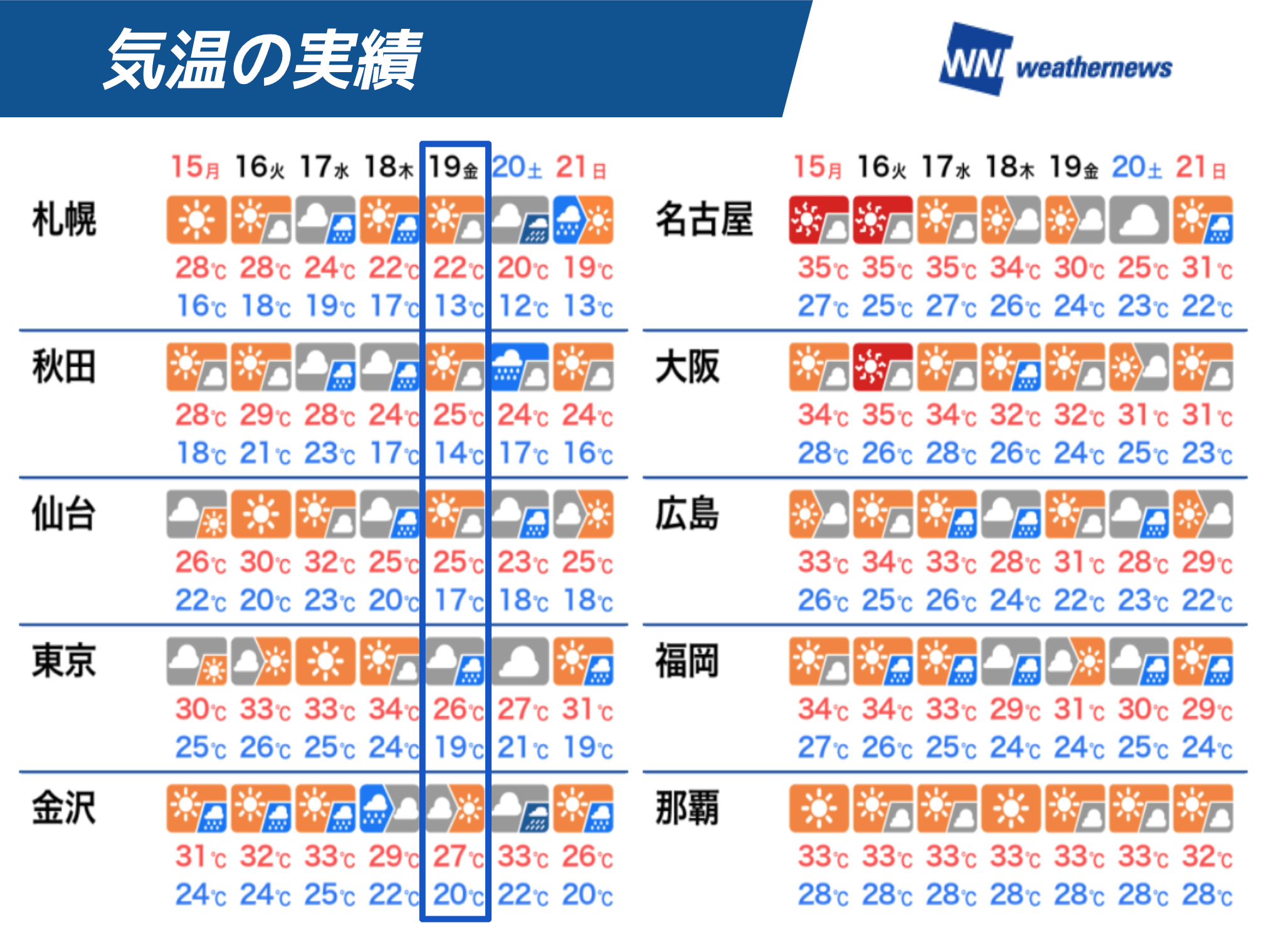 猛暑日から一転、19日(金)は秋の空気に