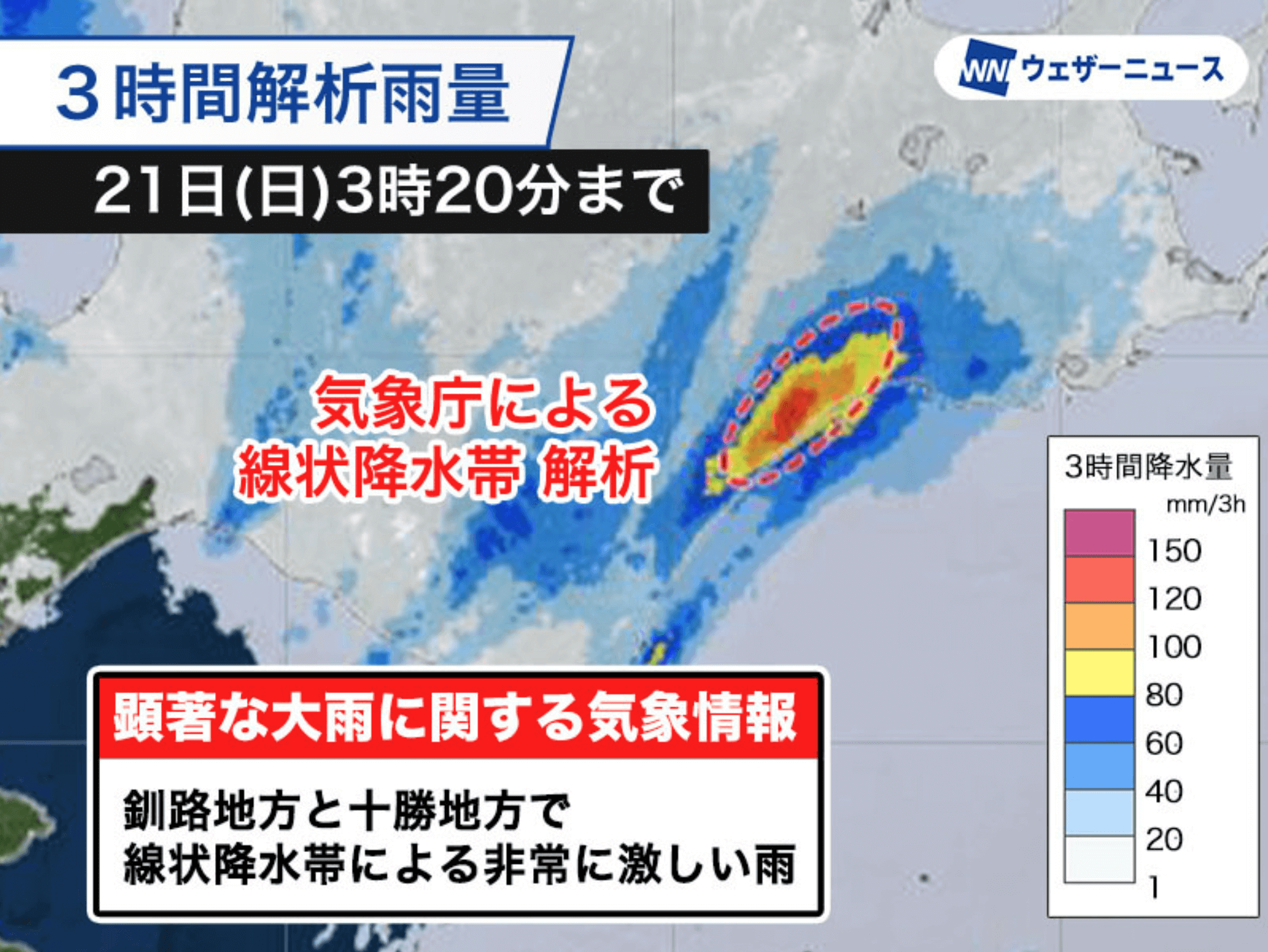 釧路地方と十勝地方で線状降水帯による大雨
