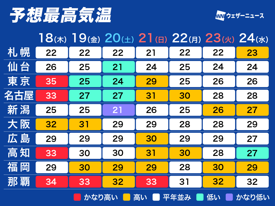 一方、沖縄では猛暑レベルでなくても厳しい残暑が続きます。熱帯夜となる日が多く、引き続き冷房が活躍しそうです。
