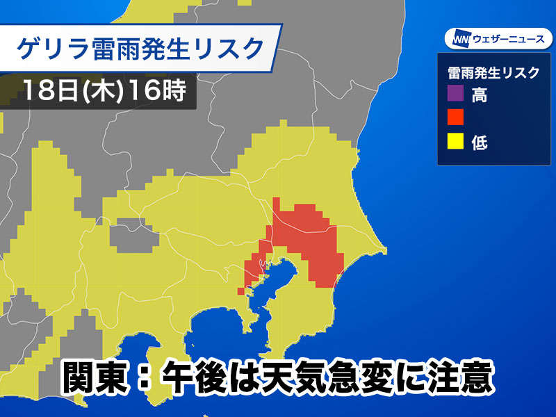 特に関東北部で大雨のリスクが高い予想ですが、東京都内周辺でも激しい雷雨になる心配があります。これからの外出は傘を用意し、天気急変に備えて雨雲レーダー等で空の変化に注意してください。