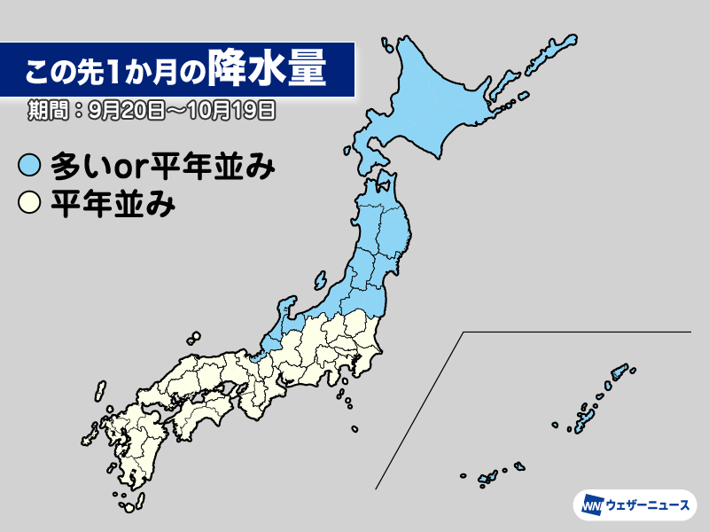 その他のエリアは天気が周期変化し、降水量は概ね平年並みとなりそうです。