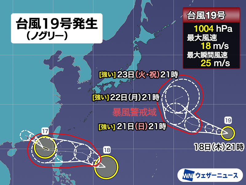 台風19号(ノグリー)発生 今日3つ目の台風発生 今後の進路に注意