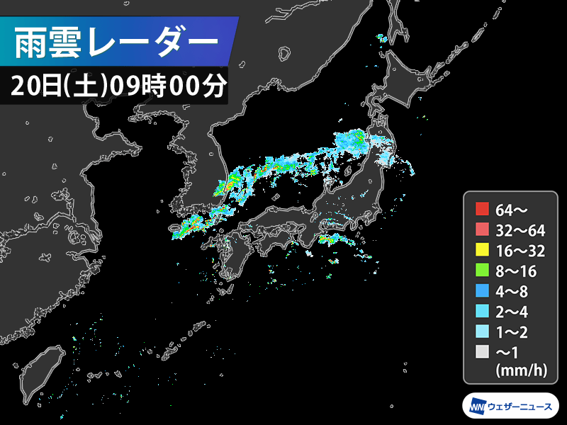 9時には、東北から九州の所々で傘が必要な雨になっています。