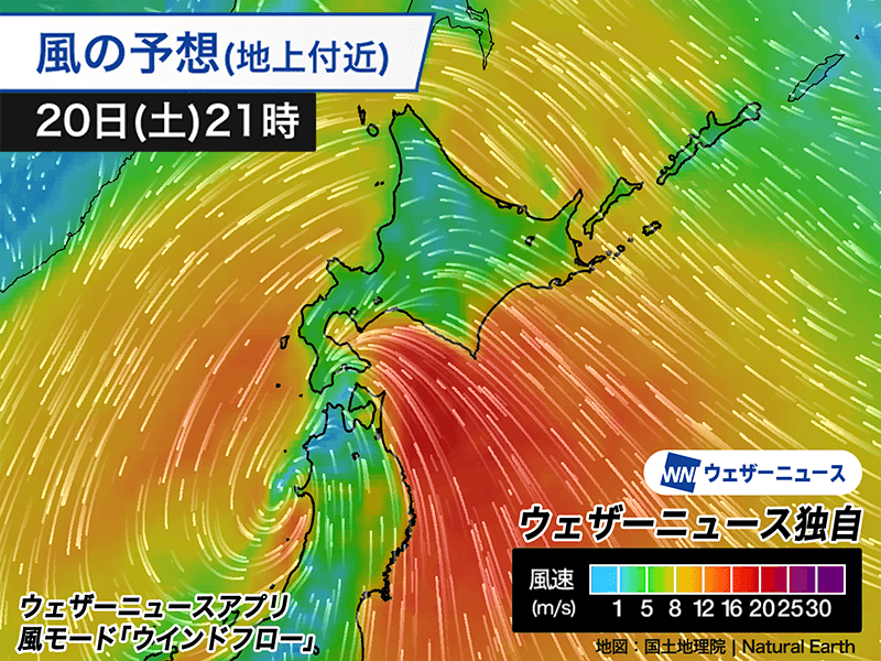 また、低気圧が発達しながら通過するため風も強まり、道内各地で大荒れの天気となるおそれがあります。